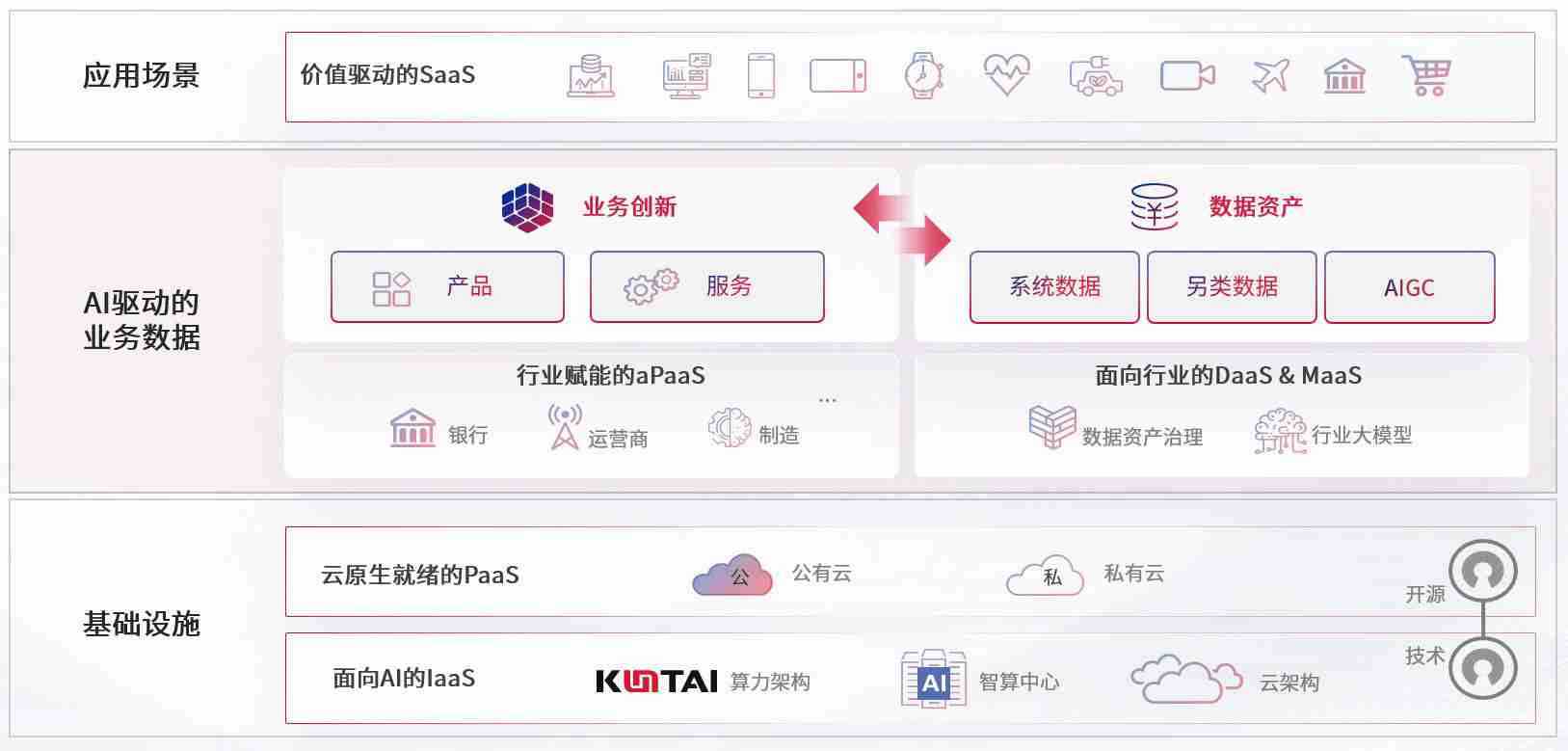 数字时代,,,,围绕企业数字化转型的关键要素,,KOO钱包数码开创性的提出数云融合战略和技术体系框架,,,,着力在云原生、、、、数字原生、、、AI原生和信创产业上架构产品和服务能力,,,,为处在不同数字化转型阶段的快消零售、、、、汽车、、、、金融、、、医疗、、、、政企、、、、教育、、、运营商等行业客户提供泛在的敏捷IT能力和融合的数据驱动能力,,,,构建跨界融合创新的数字业务场景和新业务模式,,,,助力企业级客户建立面向未来的核心能力和竞争优势,,全面推动社会的数字化、、、、智能化转型升级。。。。