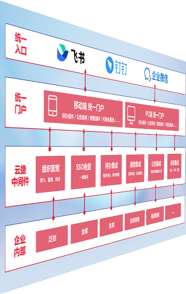 对协作平台提供支持服务,,,支持企业应用与协作平台对接,,,包含组织同步、、、、消息集成、、待办集成等。。支持目前主流的协作平台:钉钉、、、企微和飞书。。。。